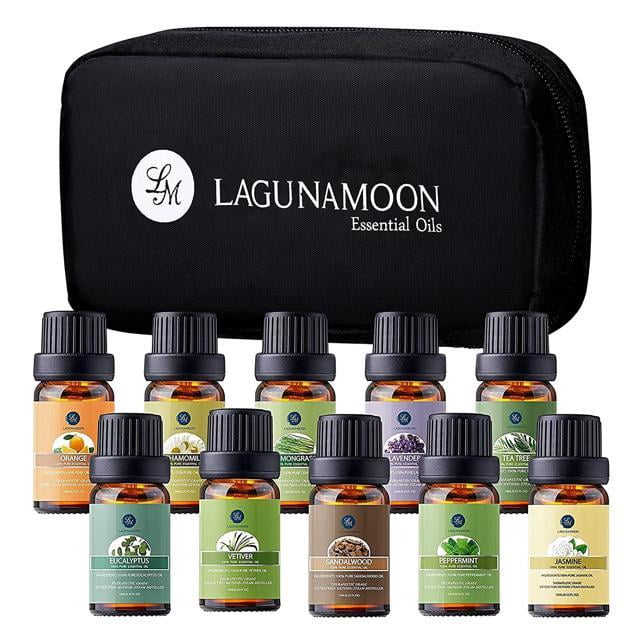Lagunamoon Fragrance Essential Oils W Travel Bag 10 Pc Set Pure Aromatherapy Oils Tea Tree Lavender Peppermint Eucalyptus Sandalwood Lemongrass Orange Chamomile Jasmine Vetiver Walmart Com
