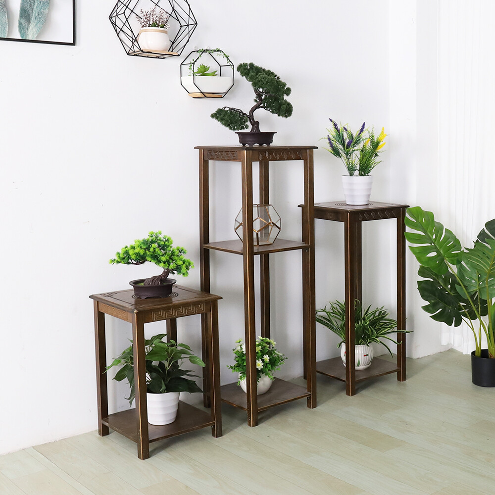 Amazon Com Zpirates Plant Stand Indoor Outdoor Tall 14 Inch Adjustable 8 To 12 Inch Wide Small To Large Planter Pot And Flower Vase Holder Dark Bamboo Wood Tools Home Improvement